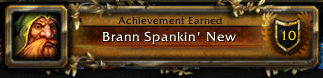 Yesterday, before Wintergrasp, I saw that Halls of Stone was the daily and since I am still working on Proof of Demise, I dragged Aravic in with me, and we quickly cleared, and to top it all off, I got Brann Spankin' New which clears the Halls of Stone of all achievements for me. Yay!